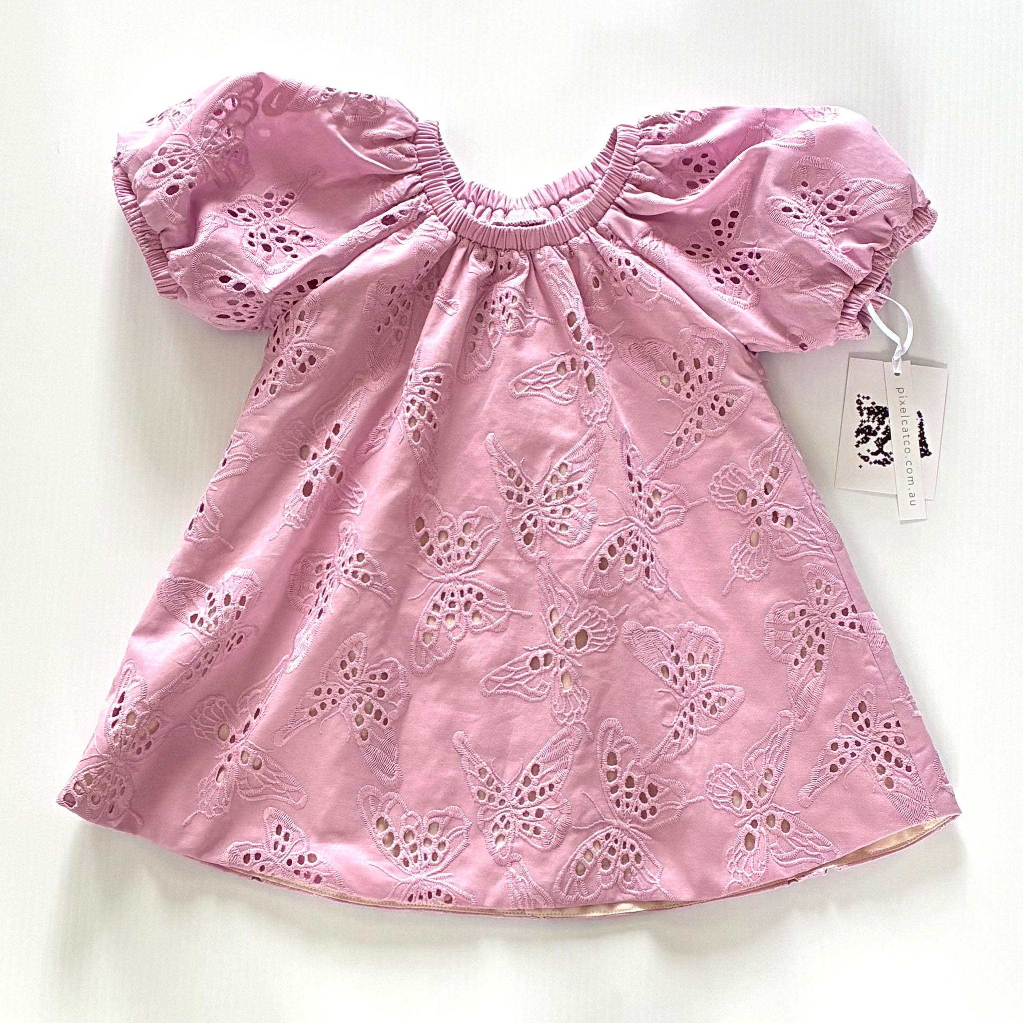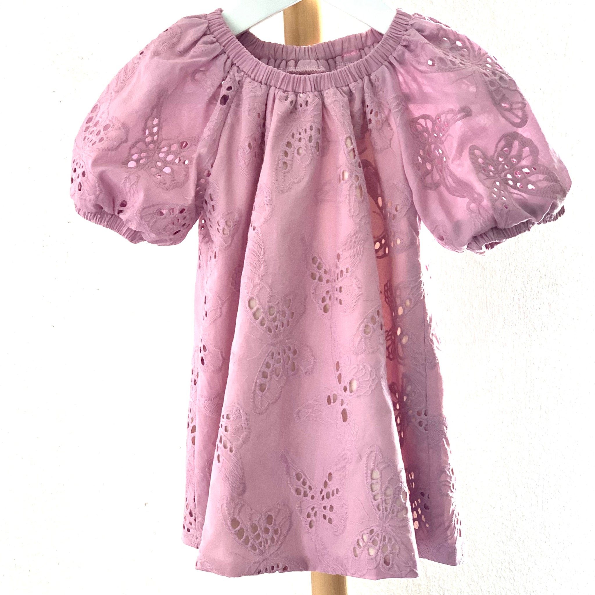 Broderie Anglaise Puff-sleeve dress, with elastic neck